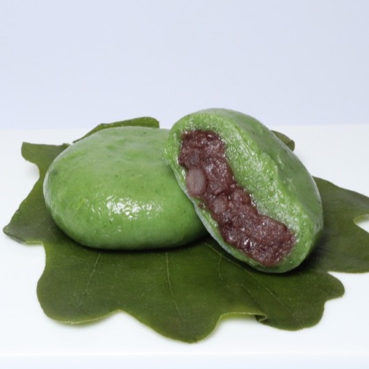 新芽をつけるまで落ちない柏葉に子孫繁栄の願いを込めて、古来より端午の節句に親しまれてきた柏(かしわ)餅。国産よもぎを搗きこんだお餅で、北海道産小豆のつぶあんを包んだ和菓子定番の組み合わせです。